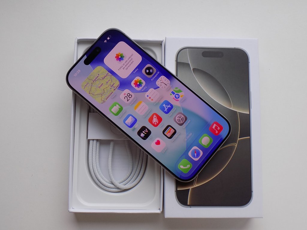 - Balení iPhonu 16 Pro je poprvé stoprocentně vyrobené z vláken.8 A krabička je tenčí, což snižuje uhlíkovou stopu přepravy.